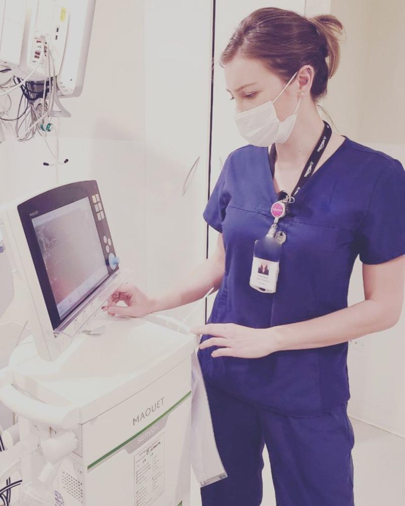 La enfermera Francisca Laree trabaja en la Unidad de Cuidados Intensivos de la Clínica Las Condes, donde atiene a pacientes que sufren de coronavirus, la enfermedad que afecta con dureza a gran parte del mundo.