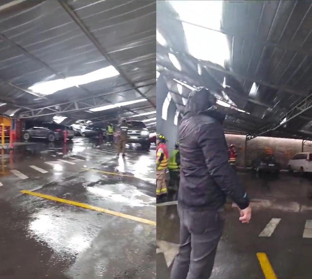 El fuerte sistema frontal que está afectando a la zona centro sur del país dejó estragos en el techo de un estacionamiento de San Bernardo.