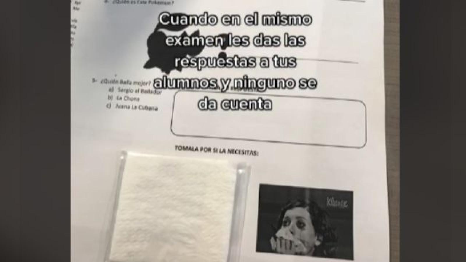 Junto a este reflexivo mensaje se encontraban las respuestas de las 13 preguntas del complejo examen. “Cuando en el mismo examen le das las respuestas a tus alumnos y ninguno se da cuenta”, escribió Alexis, quien compartió el momento en su cuenta de TikTok.