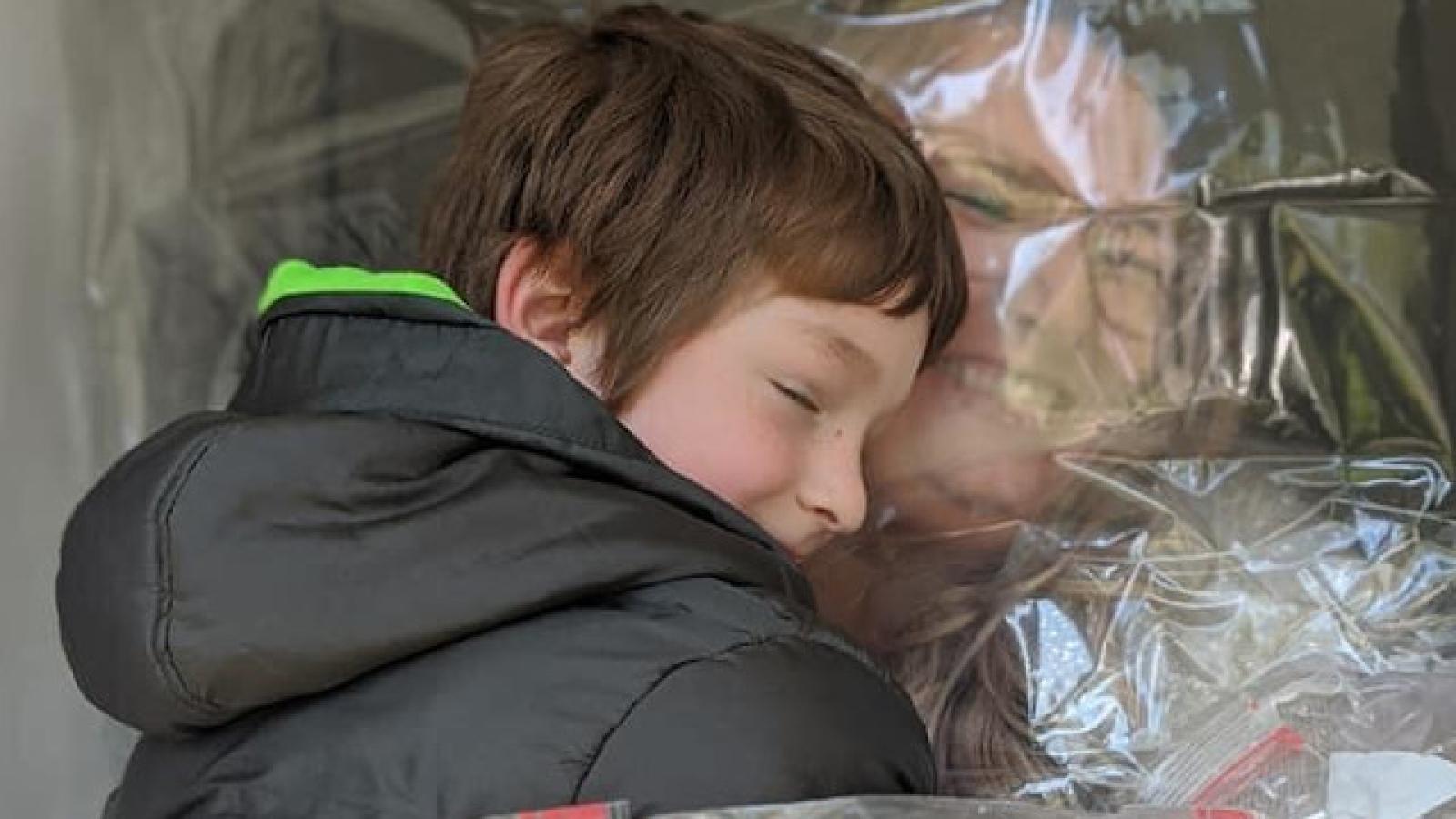 Junto a su pareja, Kelsey instaló una barrera de plástico en la puerta de su casa para lograr abrazar, de manera segura y cumpliendo las medidas de seguridad correspondientes, a los niños a quienes les hacía clases con normalidad hace ya meses atrás.