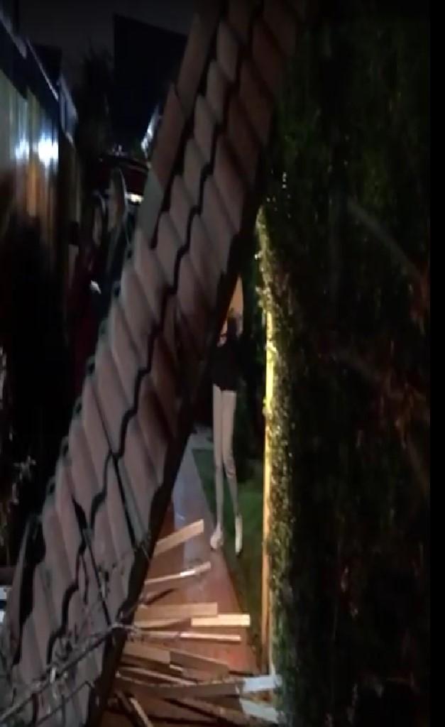 En uno de los videos se puede ver cómo el dueño de casa se percata de que parte de su casa fue impactada provocando daños materiales.