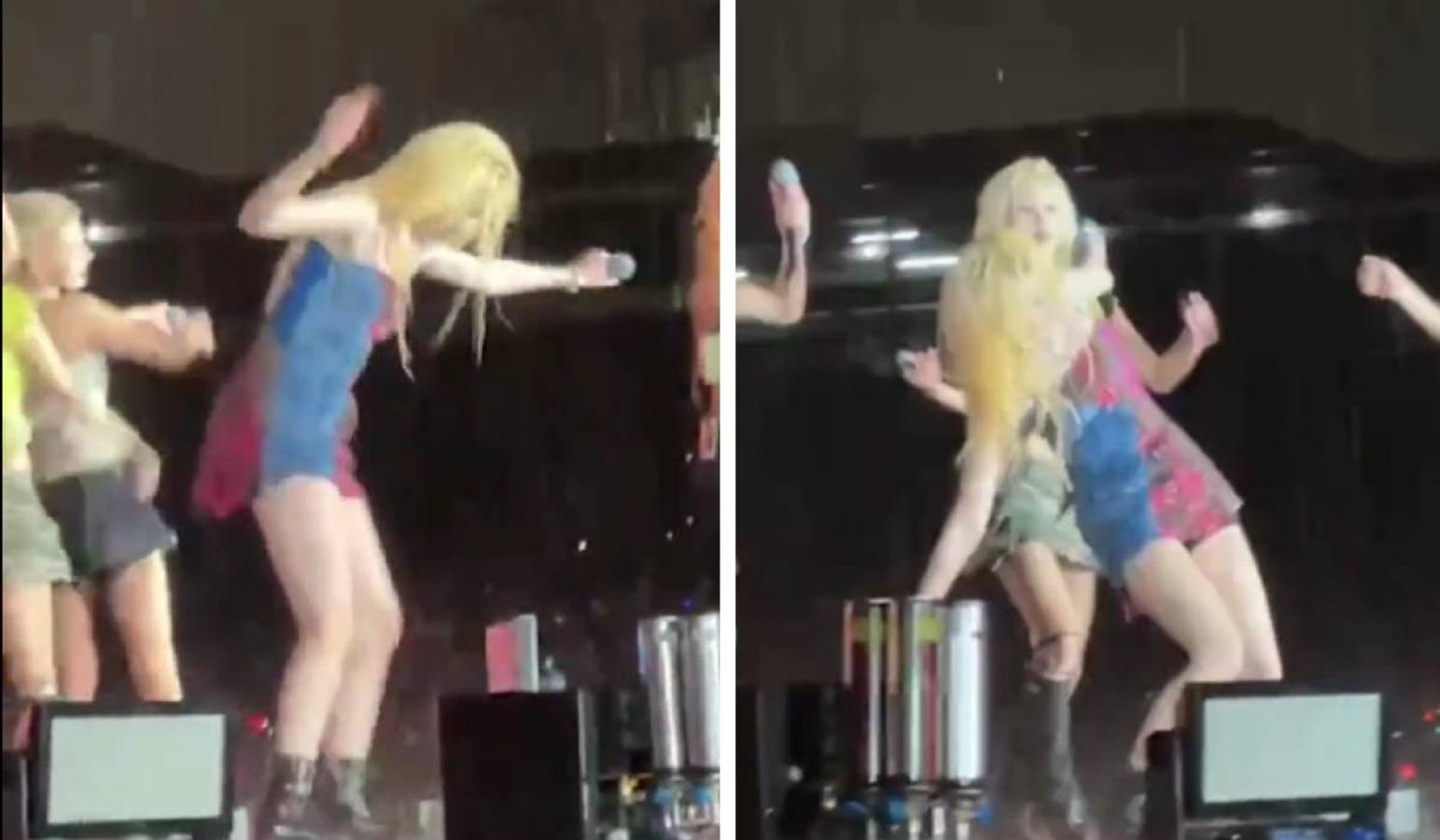 No obstante, una de ellas, la vocalista Shuhua, resbaló sobre el piso mojado y finalmente se cayó, algo que quedó registrado en videos subidos por asistentes. Este fue un punto de inflexión, y el evento fue detenido por seguridad.