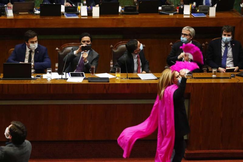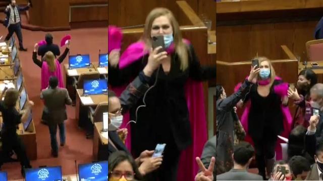 Con abanicos de plumas rosadas en sus manos, la periodista recorrió parte del hemiciclo, bailando y moviéndose sin parar. Esto a raíz de su alegría por el importante paso que se tomó en el avance de esta iniciativa para que se convierta en una realidad.