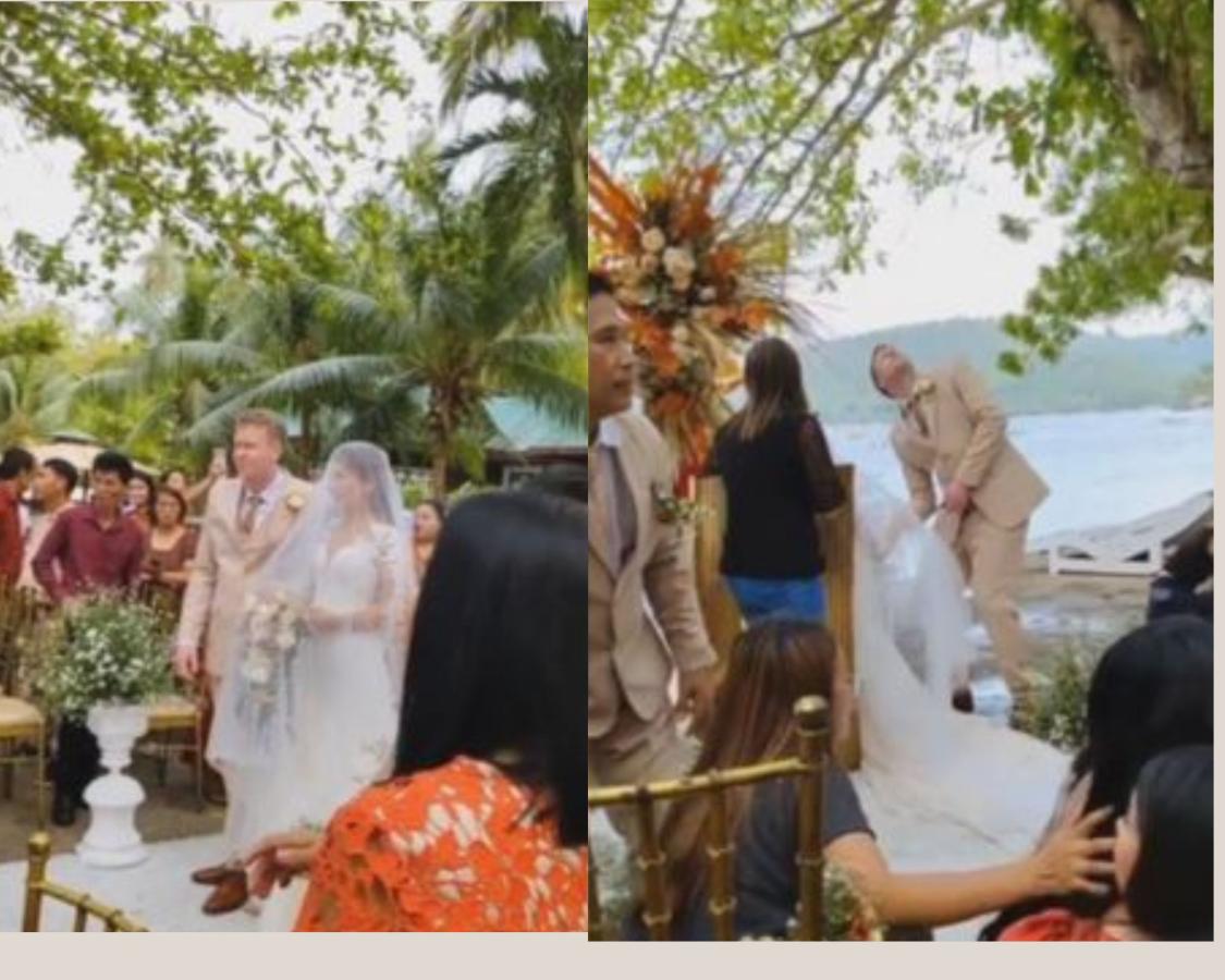 Además, también puede verse al novio intentando calmar a su futura esposa, quien estuvo cerca de caer al suelo.