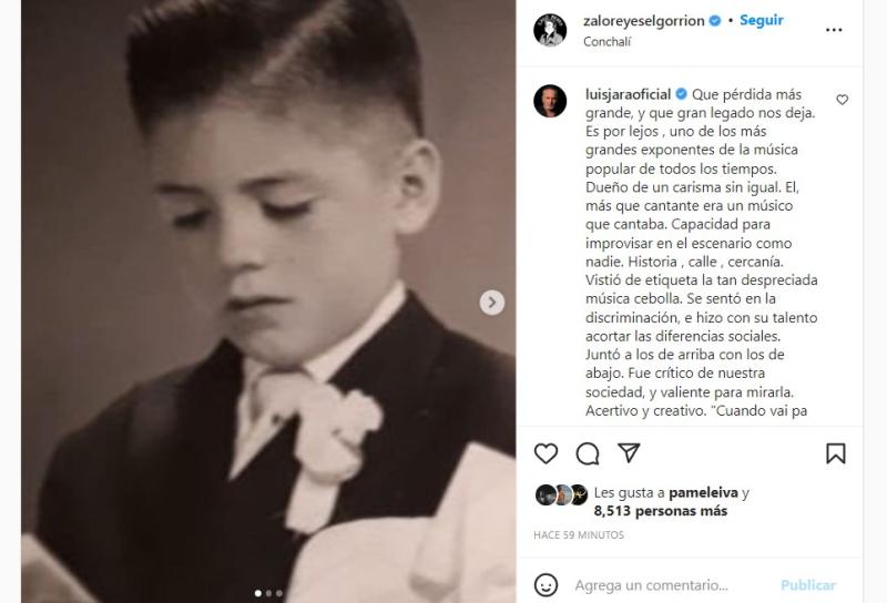 Por su parte, Lucho Jara escribió en los comentarios de la publicación en la que se anunció la muerte del Gorrión de Conchalí.