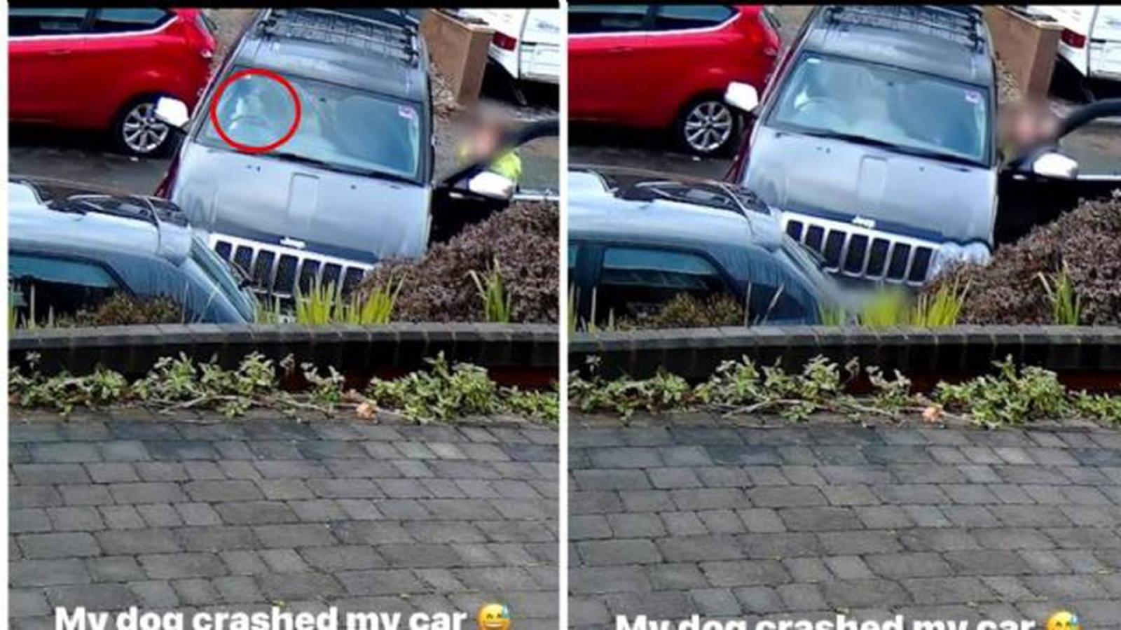 En el video se ve claramente que no hay una persona en el interior del auto y solo está la mascota tras el volante de la camioneta Jeep que bajó una pendiente sin frenos hasta encontrar al otro vehículo estacionado.