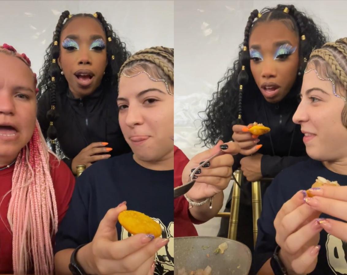 "Sopaipopos, sapaipilla...": Bailarinas de Bad Bunny probaron sopaipillas con pebre en su paso por Chile