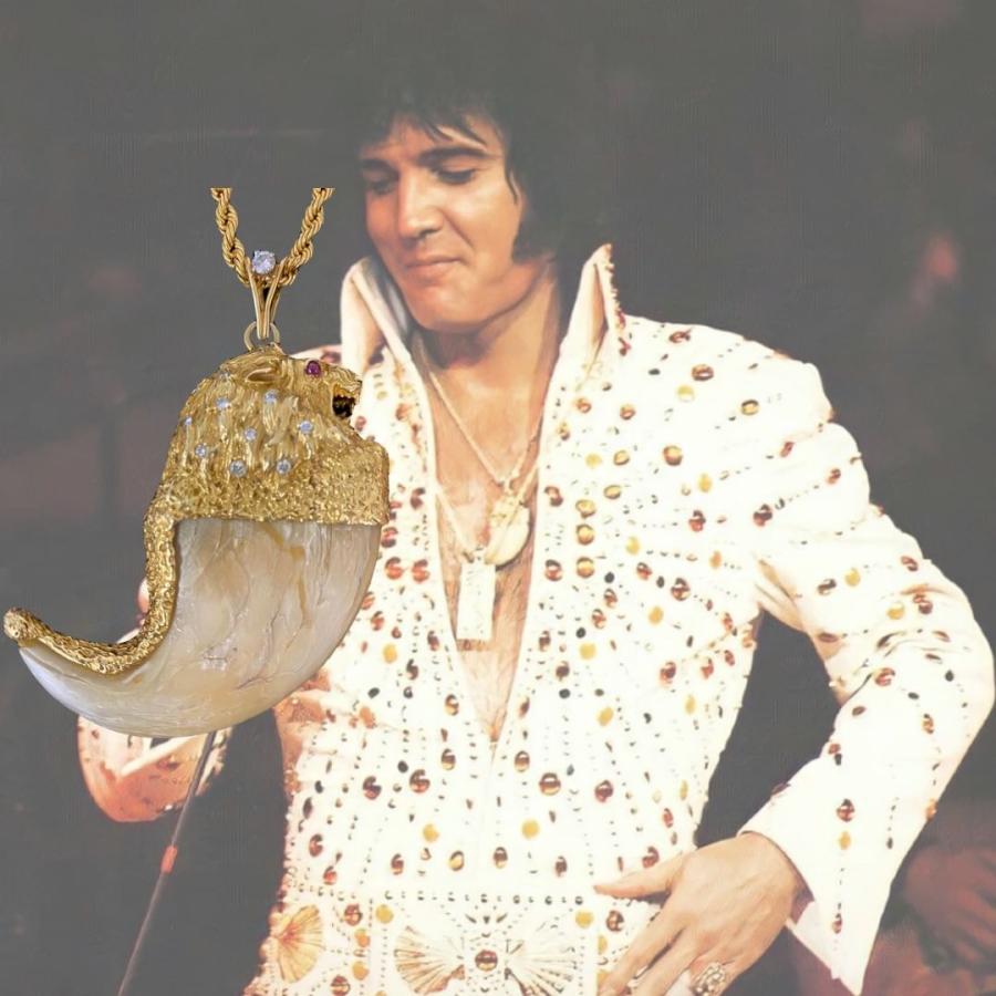"Aquí se ofrece el 'Santo Grial' de la joyería de Elvis Presley, el icónico y famoso collar 'Garra de León'", destaca la página de subastas.