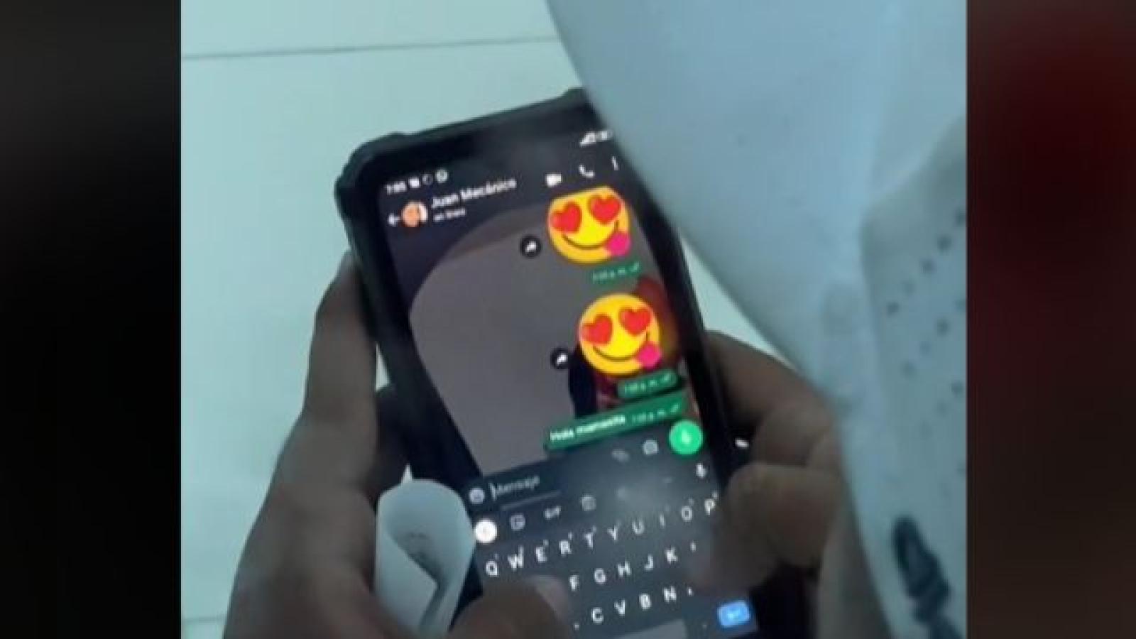 Todo ocurrió cuando la joven, ubicada detrás de su pareja, descubrió a su pareja hablando por WhatsApp con una mujer a la que había guardado bajo el hombre de “Juan mecánico”, para quien utilizó varios emojis de corazón.