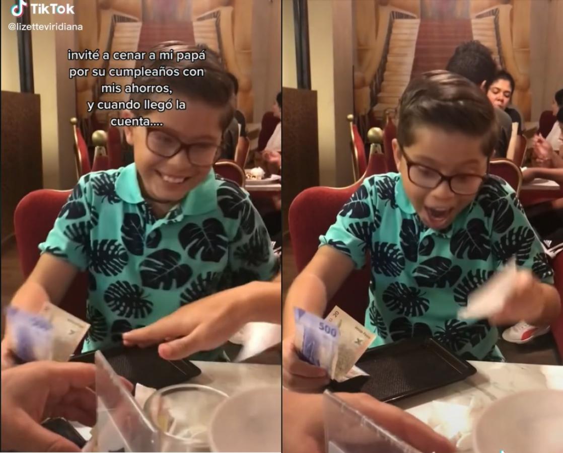 Un niño es tendencia en TikTok luego de reunir todos sus ahorros y utilizarlos para pagar la cena familiar por el cumpleaños de su padre.