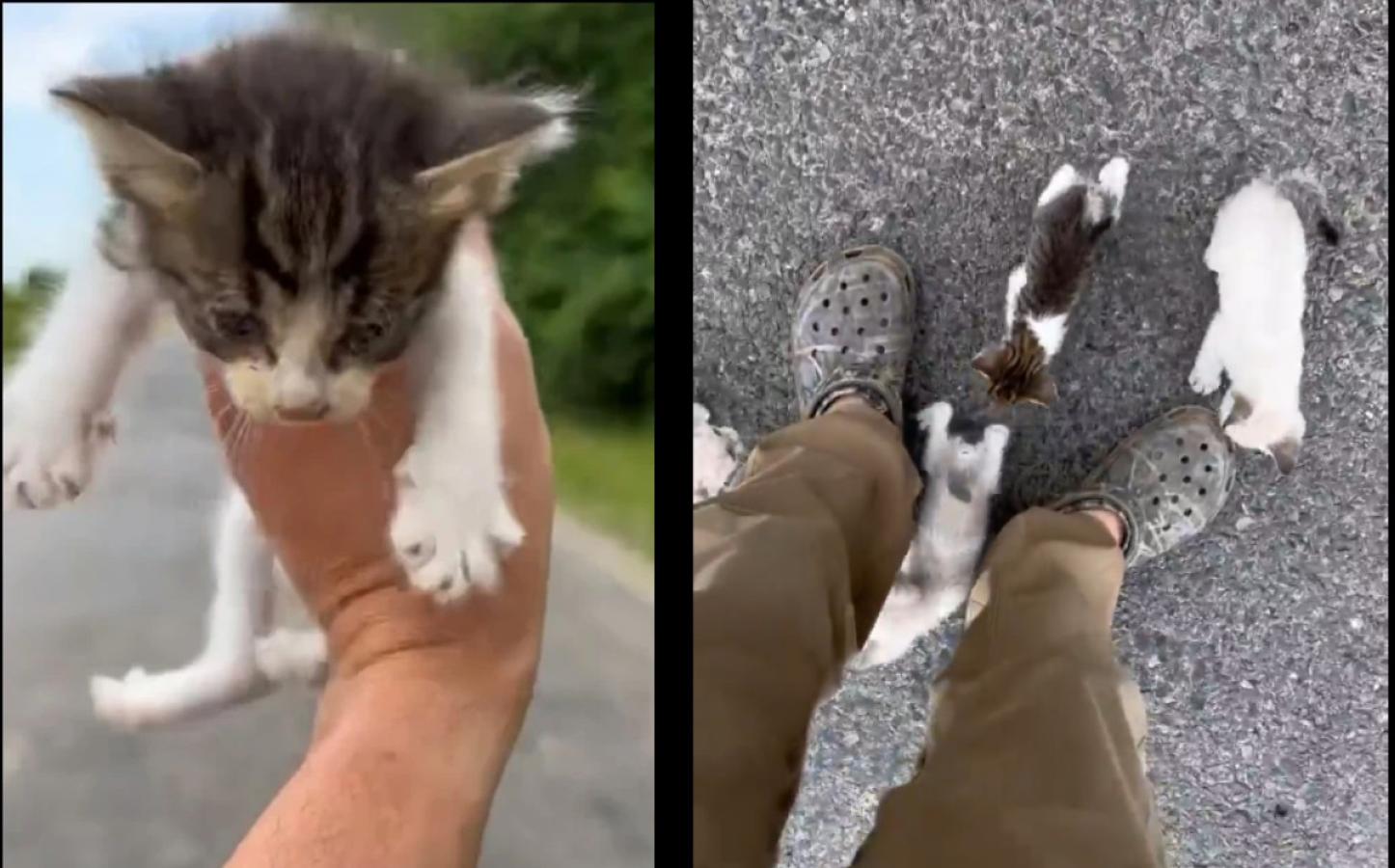 Tierna emboscada: Hombre paró a rescatar a un gatito y aparecieron 12 más
