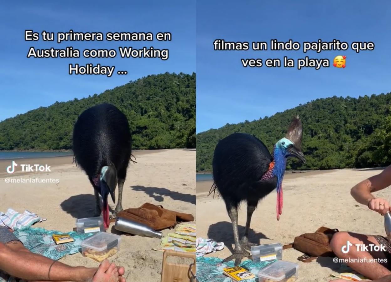 "Es tu primera semana en Australia como Working Holiday… filmas un lindo pajarito que ves en la playa… todo va bien hasta…", escribió en un video que subió a su cuenta de TikTok para luego mostrar los mensajes que le llegaron.
