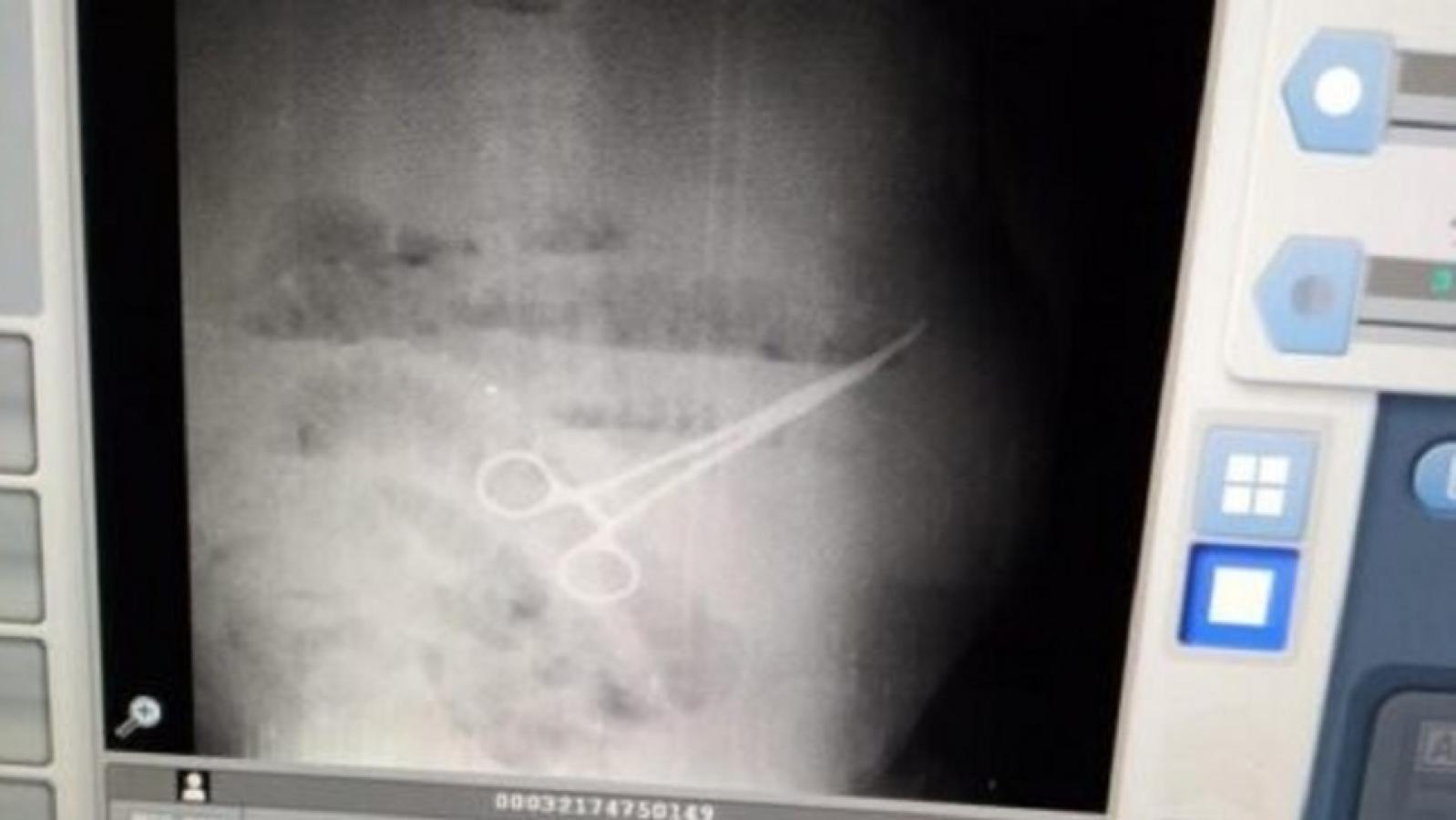 Ante esto, los profesionales decidieron realizar una prueba de rayos X, en el que se reveló el objeto que tenía en su estómago: una tijera quirúrgica.