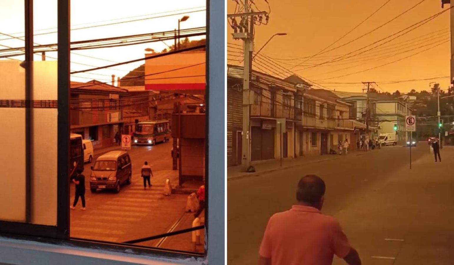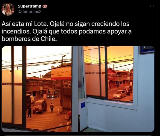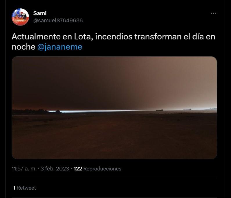 Los incendios han tenido también otro peligroso efecto en otras comunas, como Lota y Coronel, donde lugareños han captado cómo se oscureció el paisaje a raíz del humo que llegó ahí. Y es que las enormes nubes de humo han avanzado hacia el Pacífico, cubriendo a Lota y Coronel a su paso.