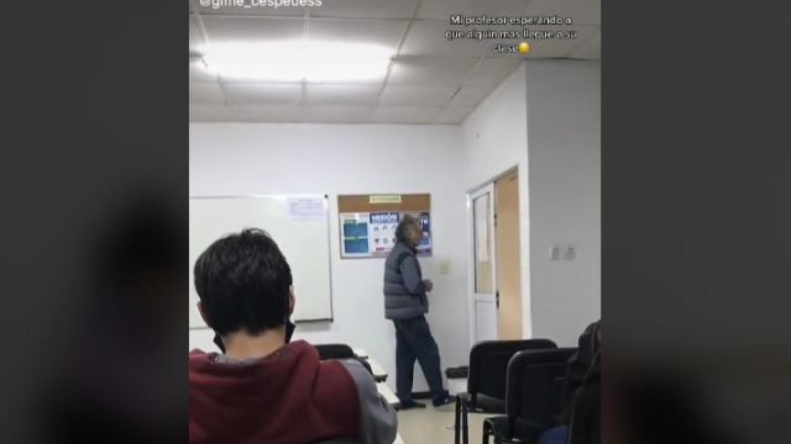 El momento ha conmovido a los usuarios de TikTok, generando empatía. La usuaria @gime_cespedes, subió el registro, posteando: “Mi profesor esperando que alguien más llegue a su clase”.