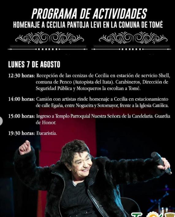 Junto con eso, mostraron las coordenadas para el homenaje de la cantante en Tomé, a realizarse el lunes 7 y martes 8 de agosto.