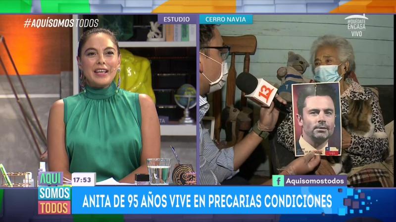 Fue una historia que ha marcado esta semana al programa “Aquí somos todos”, el que se toma las tardes del 13, y que quebró en pantalla al notero Max Collao. Anita, como le dicen a esta señora, enfrenta un precario estilo de vida, el cual se suma a diversos problemas de salud y económicos para vivir su día a día.