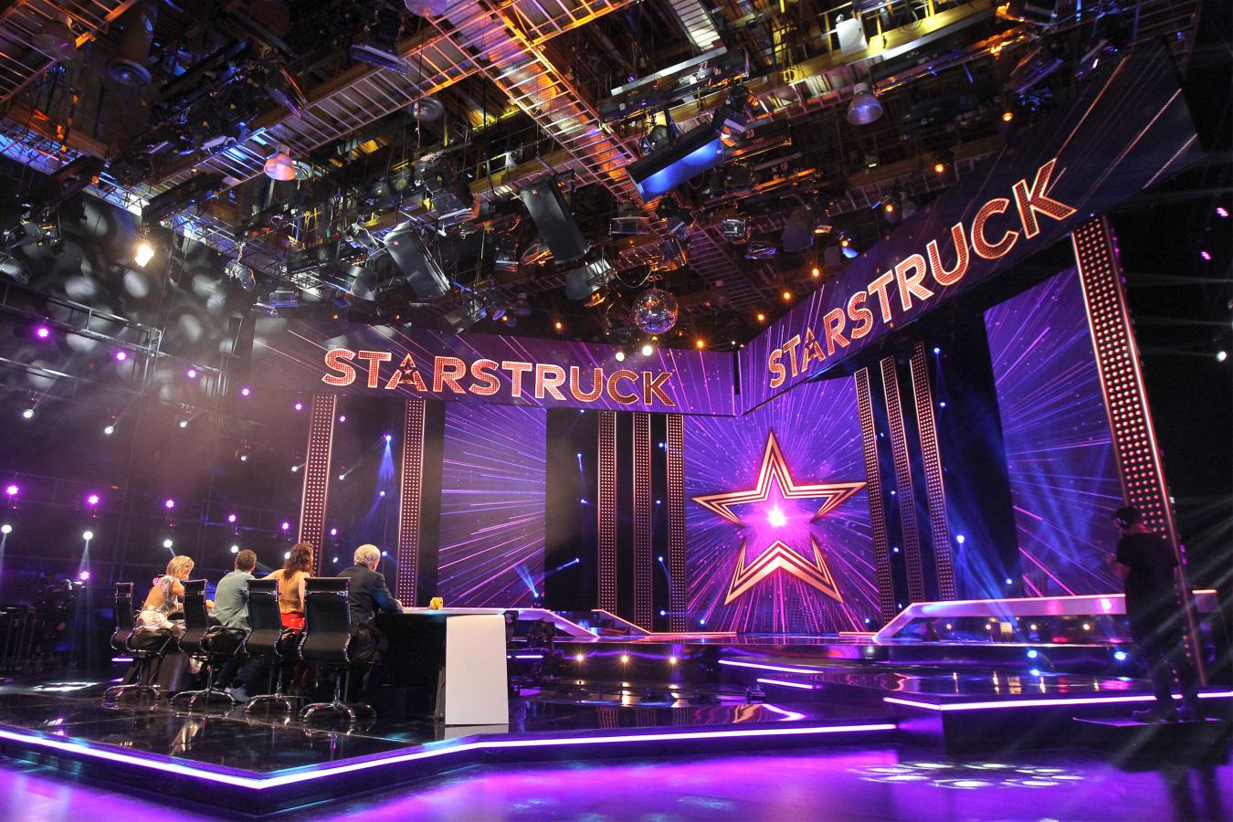 El estudio 2 de Canal 13, para la emisión de "Starstruck", cuenta con 200 metros cuadrados de pantalla, y su escenario mide 9 metros de alto y tiene un ancho de 20 metros, lo que permitirá tener a tres artistas desplegados a la vez.