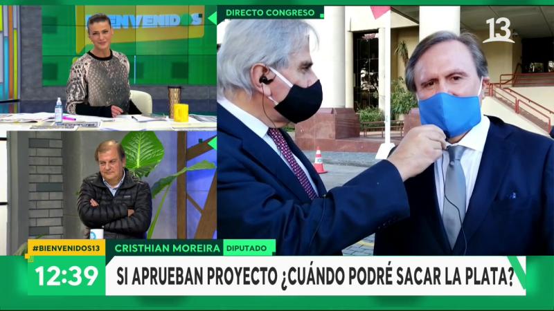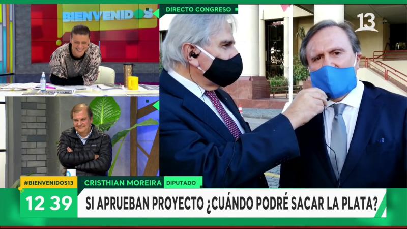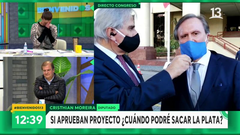 Posteriormente, la animadora de “Bienvenidos” aprovechó la presencia del diputado Moreira para preguntarle sobre su salud, ya que la semana en que se votó el proyecto de ley para permitir el retiro del 10% de los fondos de pensión tuvo complicaciones médicas. “¿Recuperado ya?”, dijo Tonka.