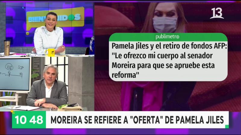 Lo complicó. Iván Moreira habló en “Bienvenidos” sobre la curiosa propuesta que le hizo Pamela Jiles en la previa de la votación en el Senado de la reforma que autoriza retirar el 10% de los fondos de las AFP. Así lo confesó el parlamentario al ser consultado sobre el tema por Tonka Tomicic.