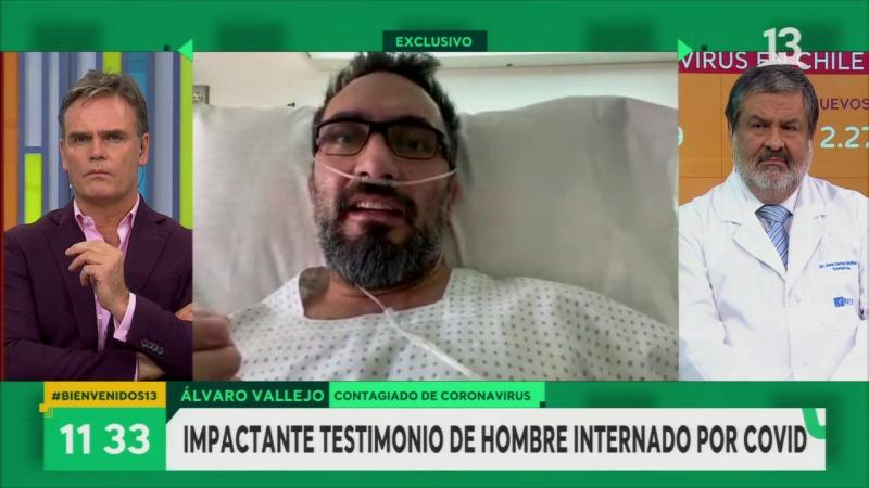 Álvaro Vallejo remeció a panel del matinal de Canal 13 al contar su testimonio lidiando con esta enfermedad. “¿Te quieres morir o realmente quieres vivir? Es un virus lobo, es un virus que tiene mucha hambre, no hay espacio. Si tú sales a correr y te quiebras una pierna, no hay dónde atenderte. Si tú sales con tu hijo y si se pega en la frente, no hay dónde atenderlo”, advirtió este sujeto con evidentes problemas para respirar.