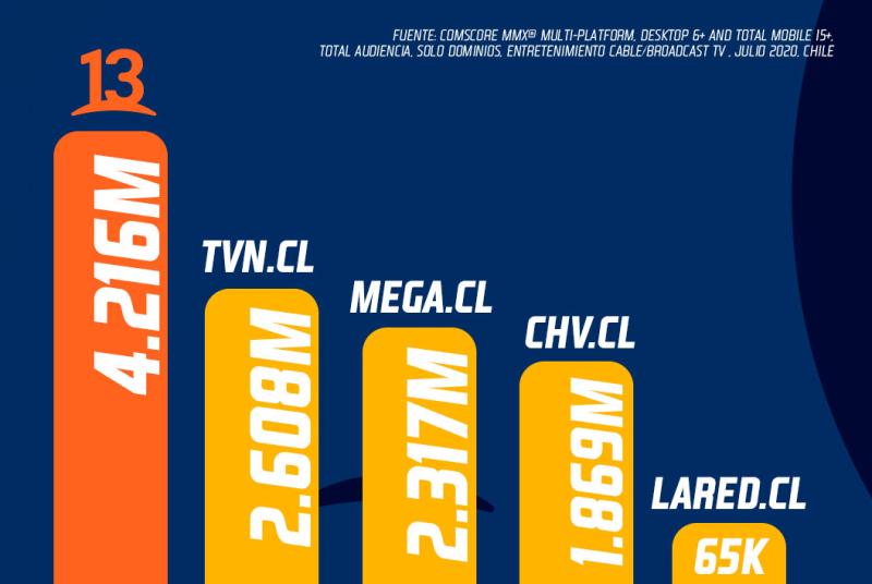 Tras la entrega de los datos de consumo de sitios web del mes de Julio 2020 la oferta digital de Canal 13 lo ubicó en el primer lugar nacional.
