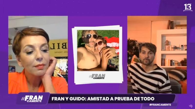 Casi se pone a llorar. Fran García-Huidobro se emocionó al hablar de su linda amistad con Guido Vecchiola, a quien entrevistó como parte del tercer episodio de “FRANcamente”, el espacio de conversación que la conductora realiza todos los lunes a través de las plataformas digitales de Canal 13.