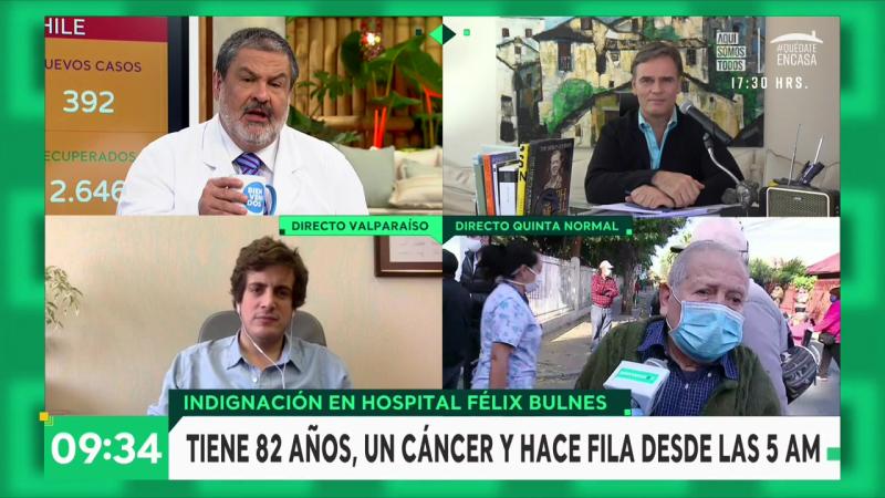 José Luis Muñoz, de 82 años, conmovió a Tonka Tomicic y Amaro Gómez-Pablos con su relato en pleno contacto en vivo desde el Hospital Félix Bulnes, donde estaba a la espera de que le entregaran los remedios para su esposa, de 84 años, y lo atendieran por la enfermedad que lo aqueja.