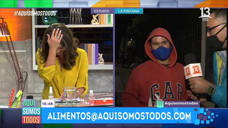 “Traje mercadería, me mandó mi mujer. Me dijo que viniera porque ella estaba viendo el programa. Yo vengo llegando recién del trabajo”, contó el joven, quien le reconoció al notero Max Collao que lo manda su pareja.
