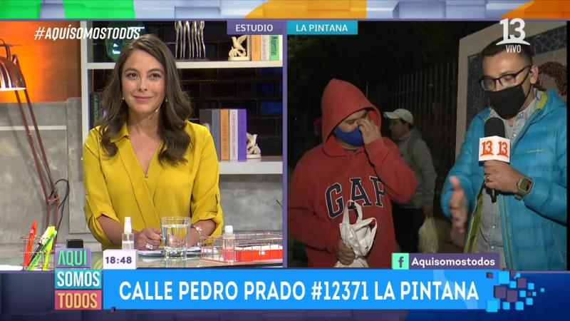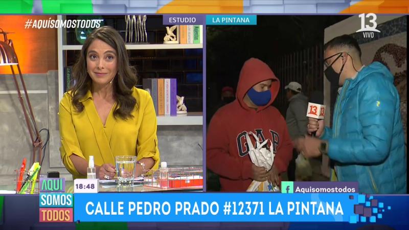 Un joven -que llegó al Colegio Violeta Parra, en la comuna de La Pintana, para entregar ayuda a nombre de su pareja- mencionó a otra mujer. Esto al momento de ser consultado por el notero Max Collao sobre la identidad de la benefactora.