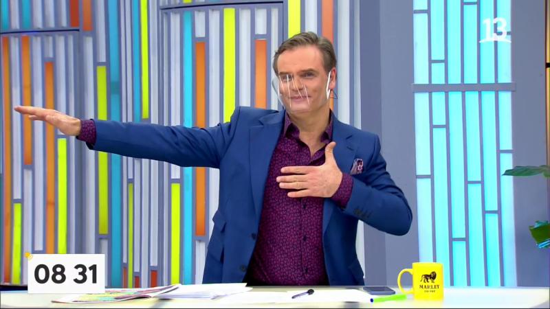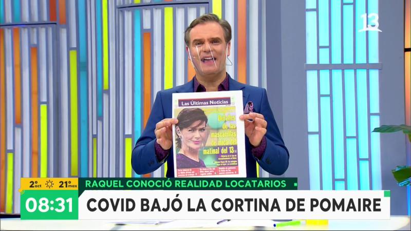 El animador del matinal de Canal 13 comenzó el programa de este miércoles llenado de piropos a su compañera. Esto a raíz de la portada en la que aparece la conductora con su mascarilla transparente. “Elegante” y “majestuosa” fueron algunos de los calificativos que le hizo el periodista.