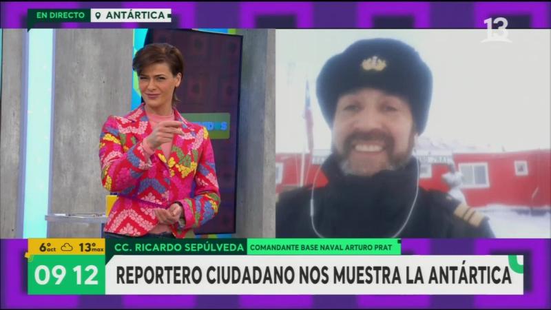 La conductora de “Bienvenidos” sorprendió al capitán Ricardo Sepúlveda, quien ejercía un rol de reportero ciudadano en La Antártica para el programa. La comunicadora comparó al uniformado con un reconocido actor extranjero, el cual hizo furor en Chile hace un par de años atrás.