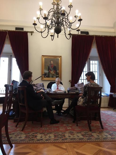 Los animadores Tonka Tomicic y Amaro Gómez-Pablos visitaron este jueves el Palacio de La Moneda con el objetivo de reunirse de manera exclusiva con Sebastián Piñera. “Bienvenidos” exhibió este 24 de abril la conversación exclusiva que los animadores del matinal de Canal 13 tuvieron con el mandatario.