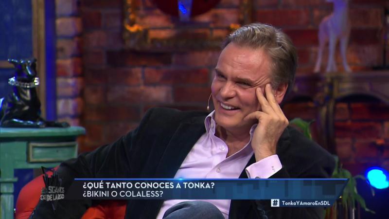 Durante un juego de preguntas a Tonka, ésta aprovechó de realizar la revelación acerca de su compañero de pantalla. “Raquel Argandoña siempre me decía… ¿Puedo decirlo? ¿Amaro puedo hablar?”, manifestó Tomicic antes de dar a conocer este dato curioso del periodista, quien aceptó que contara lo que tenía en mente.