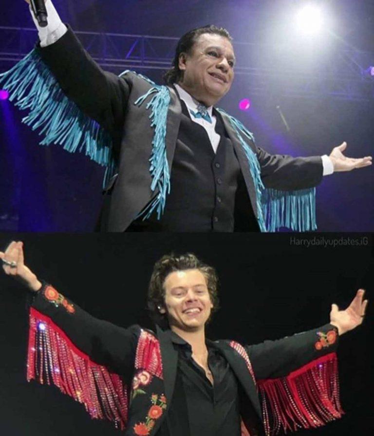 Si bien parecía improbable hallar similitudes entre Styles y Juan Gabriel, varios internautas señalaron que el intérprete de "Watermelon Sugar" tiene un estilo al vestir muy parecido al del mexicano.