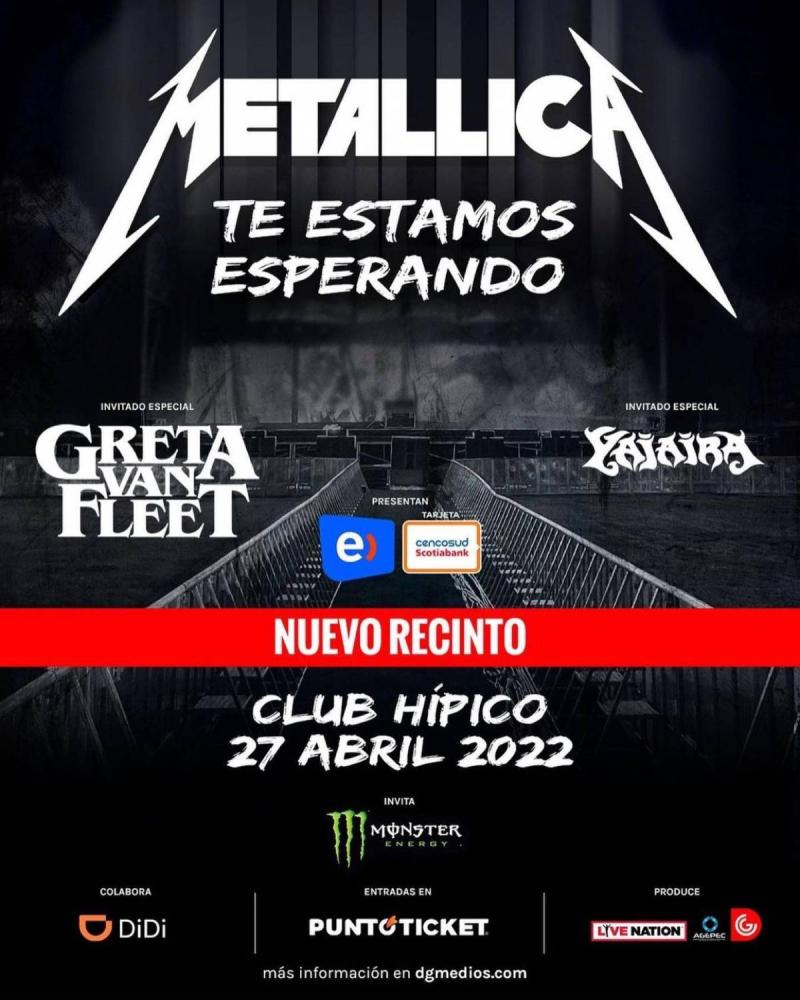 Se puso fin a la teleserie del concierto de Metallica, ya que la banda liderada por James Hetfield se presentará en nuestro país en un nuevo recinto, este 27 de abril, luego del impasse producido por el atraso en las obras del Estadio Nacional.