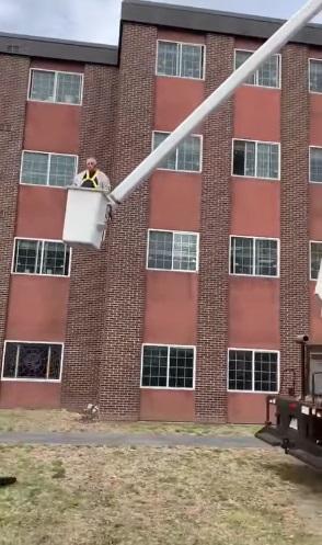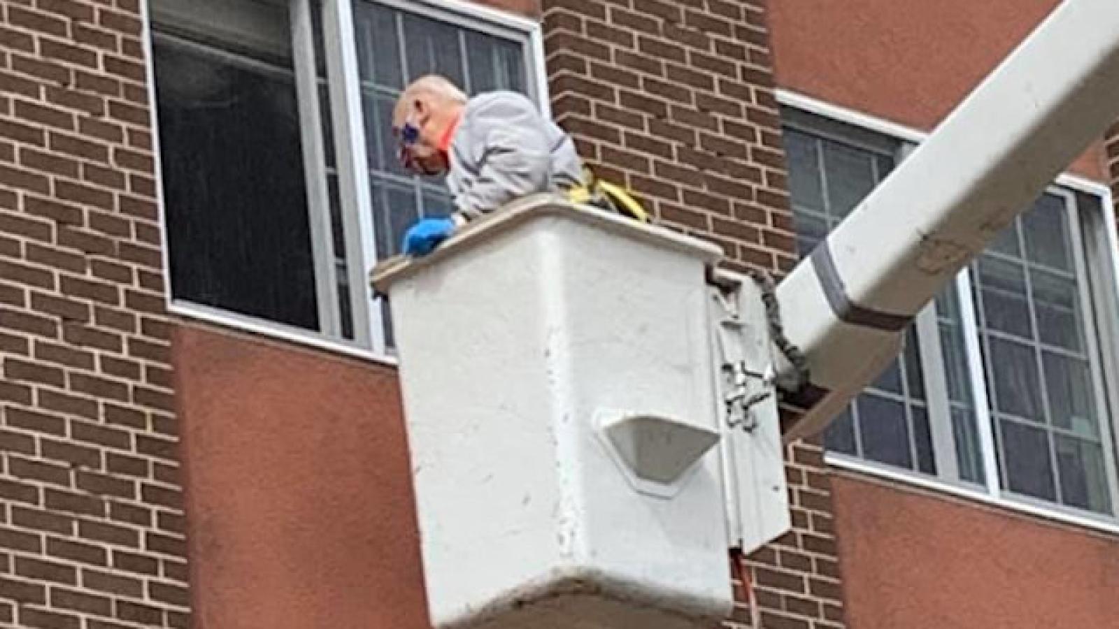 Abuelo usa grúa para reencontrarse con su esposa durante cuarentena en EE.UU.