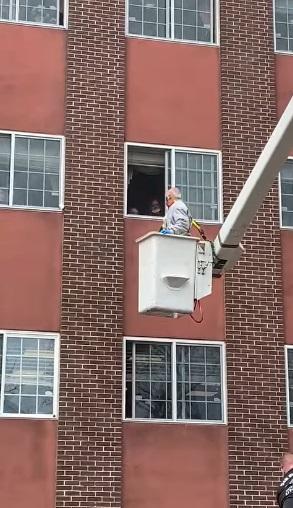 Gracias a una campaña realizada en redes sociales, este hombre logró reunirse con su amada y a través de una curiosa forma: usando una grúa que le permitió asomarse por la ventana del dormitorio de su mujer, logrando que se reunieran, pero respetando el distanciamiento social propuesto por las autoridades de salud.