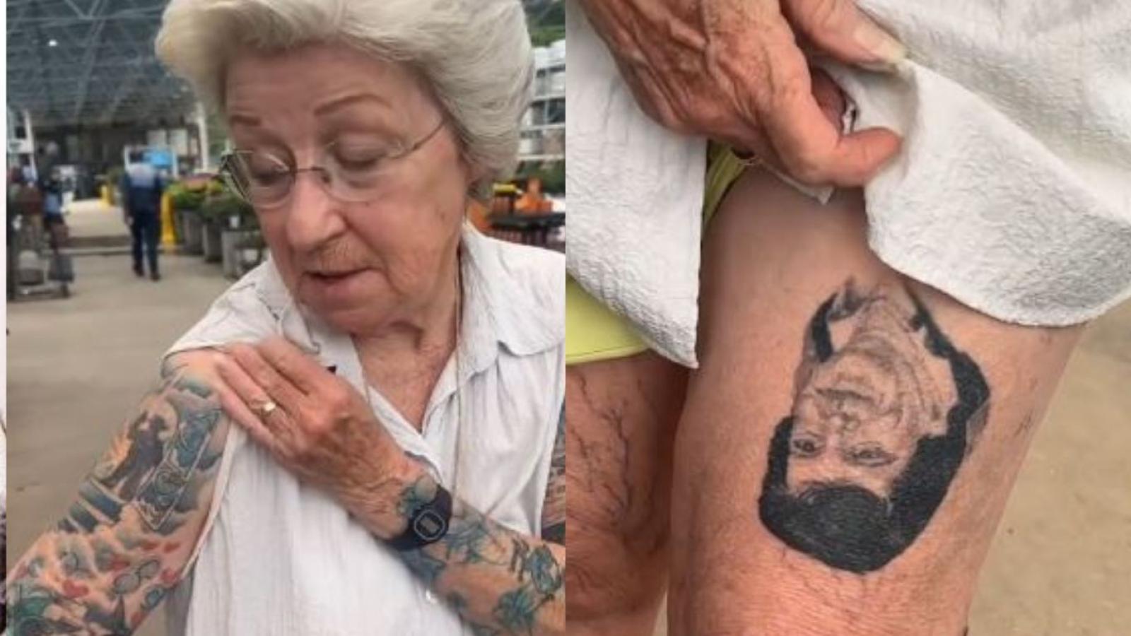 Adulta mayor sorprende al mostrar sus tatuajes: “está al revés porque es sólo para mí”