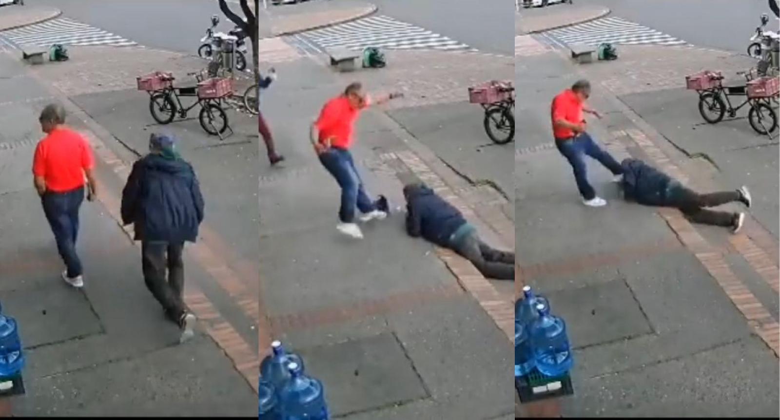 En redes sociales se ha hecho viral el registro de una mujer, que denunció que su padre, un adulto mayor, fue brutalmente golpeado al intentar afirmarse de otra persona luego de tropezar en plena calle.