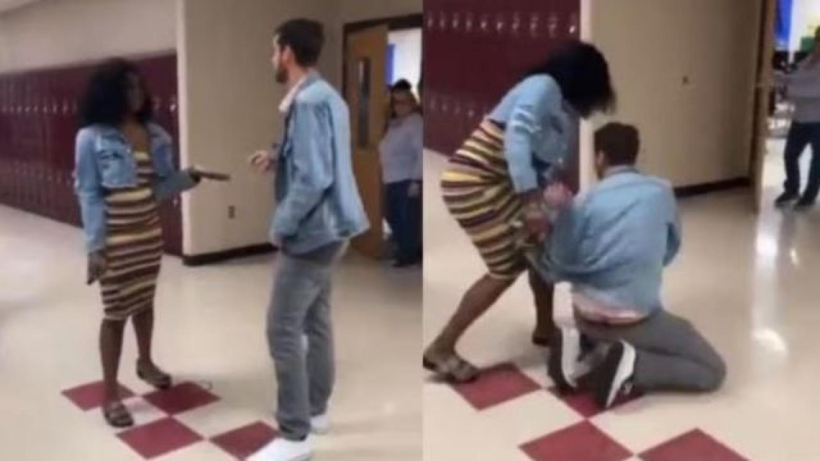 Otro profesor intentó calmar a la estudiante mientras repetía que necesitaba su teléfono, pero el maestro se negó a devolverlo. Los demás estudiantes de la clase se alborotaron y se rieron mientras presenciaban el enfrentamiento.