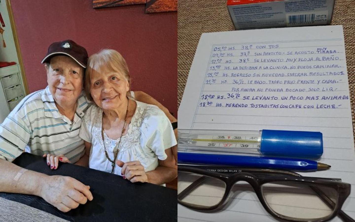 Precisamente, junto al escrito la joven compartió una fotografía de una hoja donde su abuelo anotó absolutamente todo sobre la salud de su esposa: las horas, síntomas, comida, estado de ánimo y temperatura.