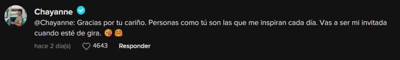 "Gracias por tu cariño. Personas como tú son las que me inspiran cada día. Vas a ser mi invitada cuando esté de gira", le prometió Chayanne.