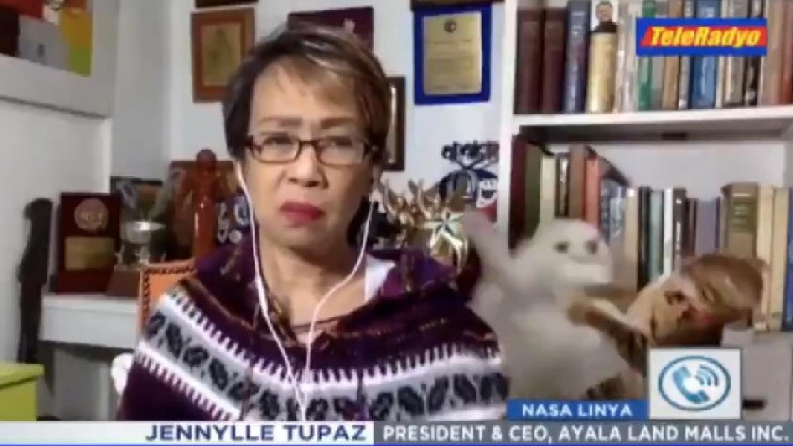 La periodista Doris Bigornia estaba entrevistando a Jennylle Tupaz, una empresaria de bienes raíces, cuando sus mascotas protagonizaron una verdadera “batalla gatuna” por la pantalla chica, registro audiovisual que se viralizó rápidamente.