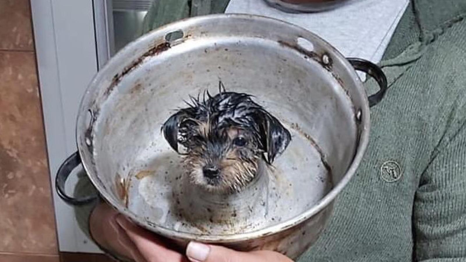 Cachorro quedó atrapado en molde de queque: Así fue el operativo para ayudarlo