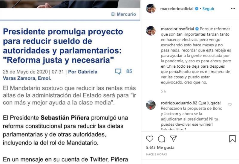 Marcelo “Chino” Ríos criticó duramente la tardanza con que se ha tratado el proyecto que busca reducir el sueldo de autoridades y parlamentarios. Esto debido a la reforma constitucional que fue promulgada por el mandatario este 25 de mayo.