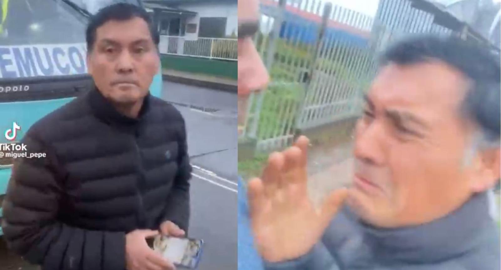 Al ver que la persona que lo estaba grabando no accedía a golpearlo, el hombre no encontró mejor idea que él mismo hacerlo (levemente), haciendo creer que había recibido duros golpes: “¿Por qué me pegaste conche…? ¿Por qué me pegaste? ¡Te voy a demandar!”, amenaza el chófer, sin haber recibido ninguna agresión, pero pareciendo que sí, incluso simula un breve llanto.