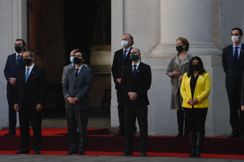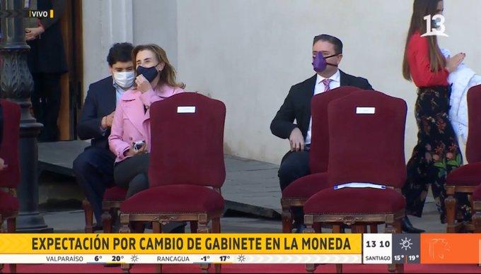 Pino fue testigo del cambio de cartera de Karla Rubilar, su pareja, quien pasó de liderar la Secretería General de Gobierno a encabezar el Ministerio de Desarrollo Social y Familia. Jaime Bellolio es quien estará en la vocería desde esta jornada.