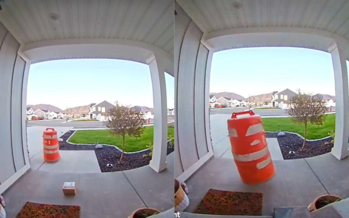 ¡Como en Toy Story! Ladrón se escondió debajo de un cono de tránsito para llevarse un paquete de una casa