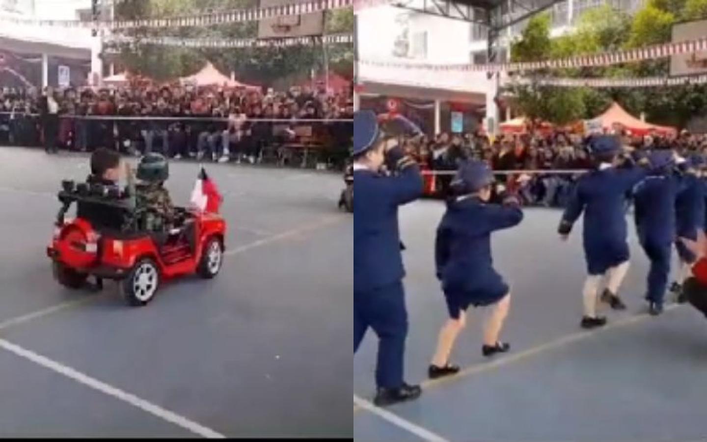 Con auto presidencial incluido: Niños de pre-kinder crearon su propia Parada Militar